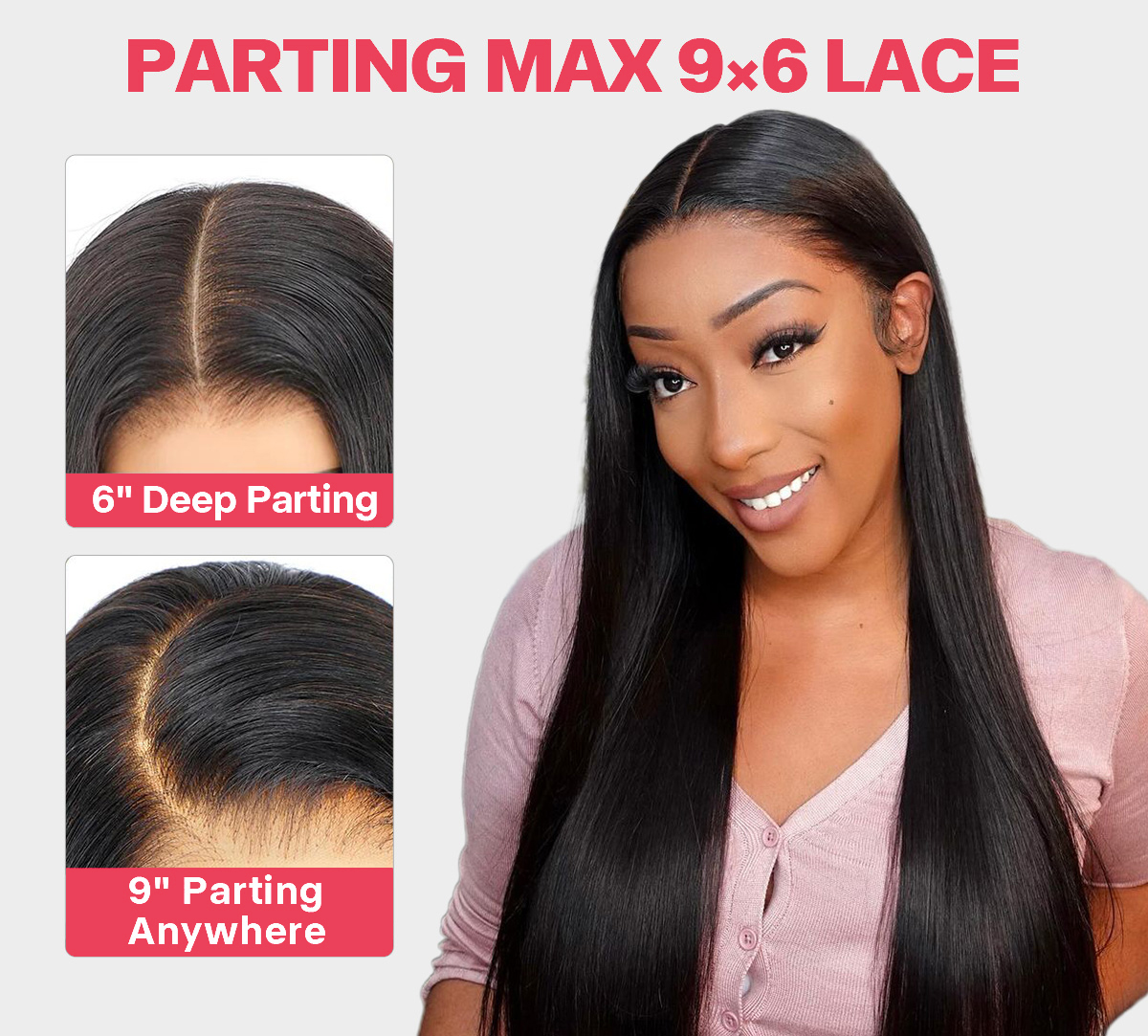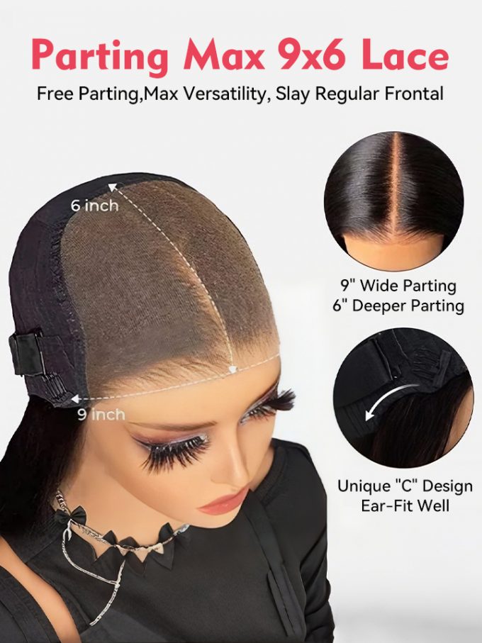 • Maximum 9×6 Lace Size, allows versatile hairstyles.