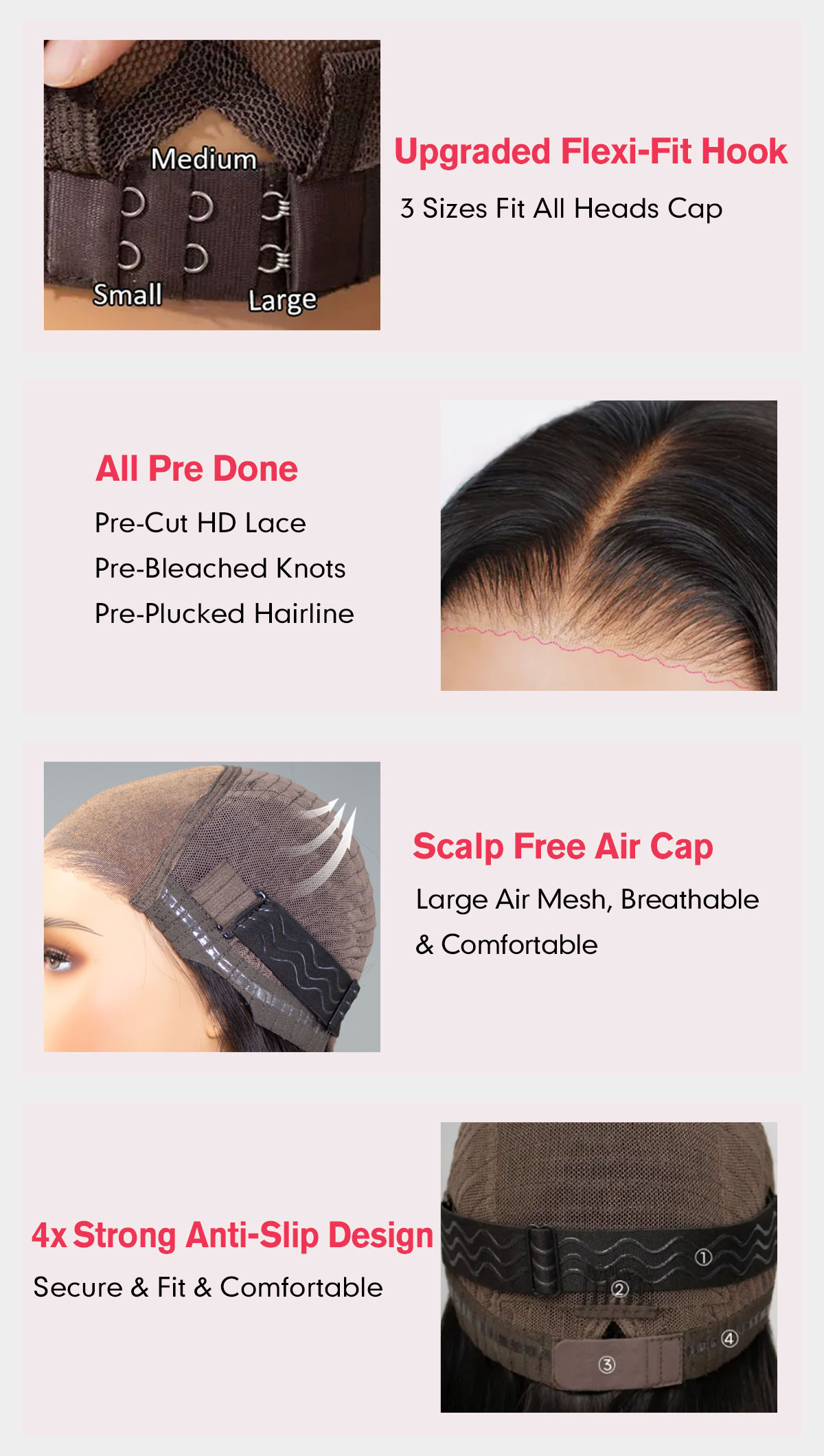 - Flexi-Fit 3 Sizes to Adjust Match All Size Head