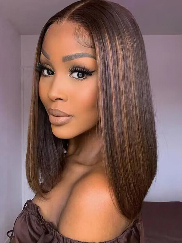 Pre-Bleached Knots Ombre Highlight Straight Bob Wig 6×5 Pre Cut HD Lace Glueless Wig