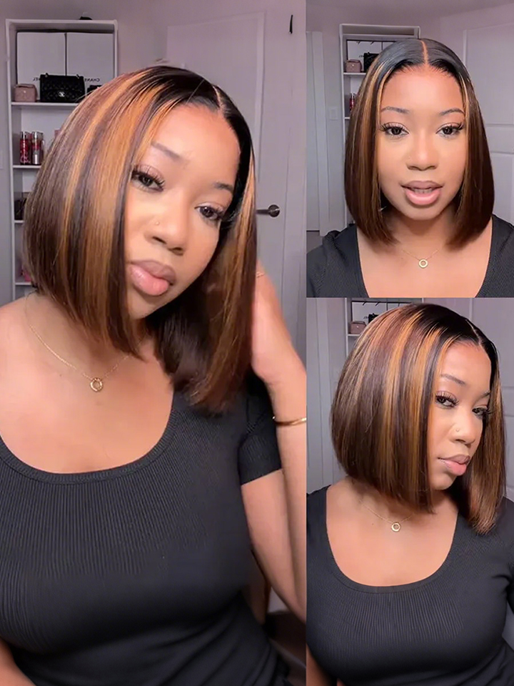 21 reviews for Pre-Bleached Knots Ombre Highlight Straight Bob Wig 6×5 Pre Cut HD Lace Glueless Wig